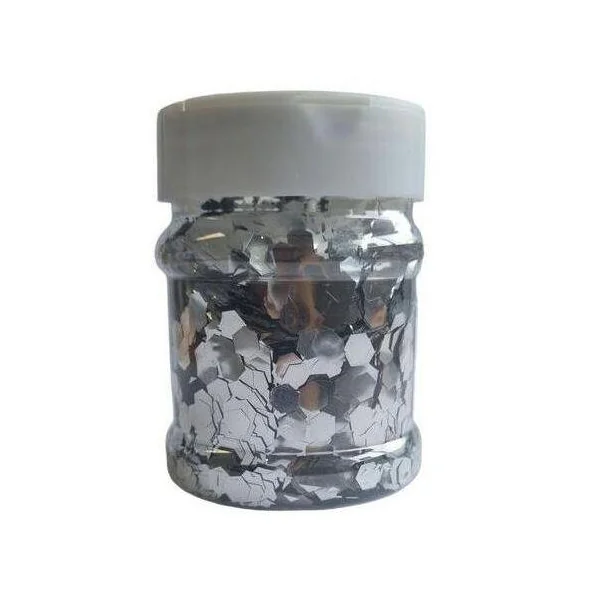 PAILLETTES NID D’ABEILLE 100G EN POT PLASTIQUE – ARGENT