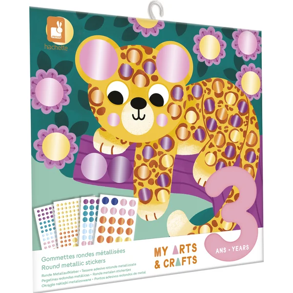 Janod My arts&crafts Mini Autocollants ronds scintillants Tigre et amis à partir de 3 ans