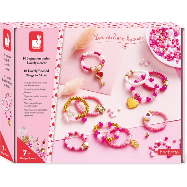 Janod Atelier Kit Créatif Fabrication de Bijoux Bagues Perles 10 pcs