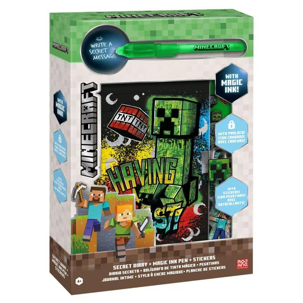 MINECRAFT- JOURNAL INTIME + STYLOS ENCRE MAGIQUE ET STICKERS