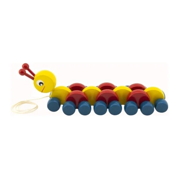 Chenille en bois à tirer colorée 27cm