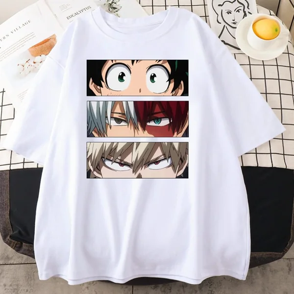 T-Shirt MHA Femme Shoto Izuku et Katsuki Blanc