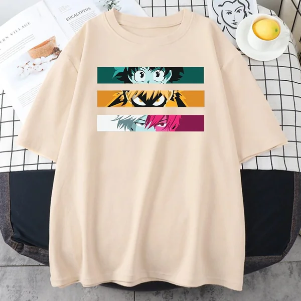 T-Shirt MHA Femme Shoto x Izuku x Katsuki Beige