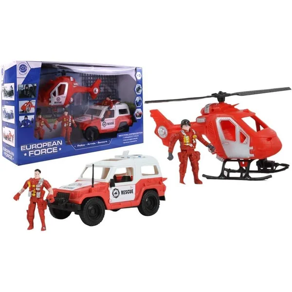 POMPIER HELICOPTERE ET AUTO 3 PERSONNAGES