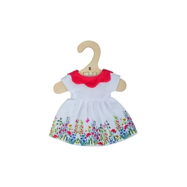 Bigjigs Toys Robe fleurie blanche avec col rouge pour poupée 28 cm