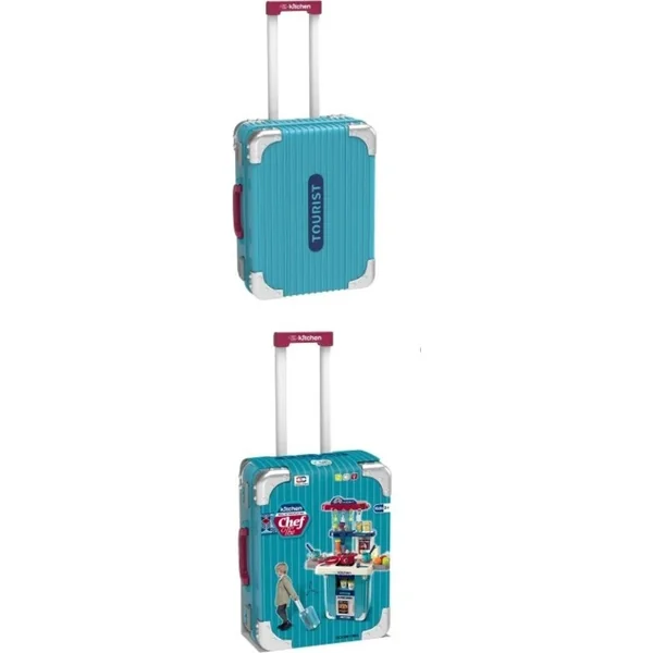 Magnifique cuisine bleue dans un design pratique 2 en 1, que les enfants peuvent emporter partout ! Une fois fermée, elle se transforme en une valise de voyage moderne avec des roues, et une fois ouverte, elle se transforme en une cuisine complète avec tous les accessoires nécessaires pour cuisiner, cuire et servir. Un choix idéal pour les petits chefs et cheffes.