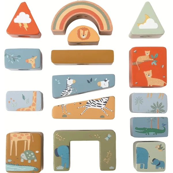 Partez pour une aventure safari, sans bagages, sans ceinture, mais avec une bonne dose d’imagination ! Ce jeu d’empilage original apporte amusement et développement en un. Les enfants empilent des cubes avec des images d’animaux sur des tiges. Ils seront ravis de voir une girafe avec son petit, un crocodile, une zebra avec un petit zèbre et un éléphant. Chaque pièce a sa place et dès que tout est correctement empilé, toute la famille safari apparaît devant les enfants.