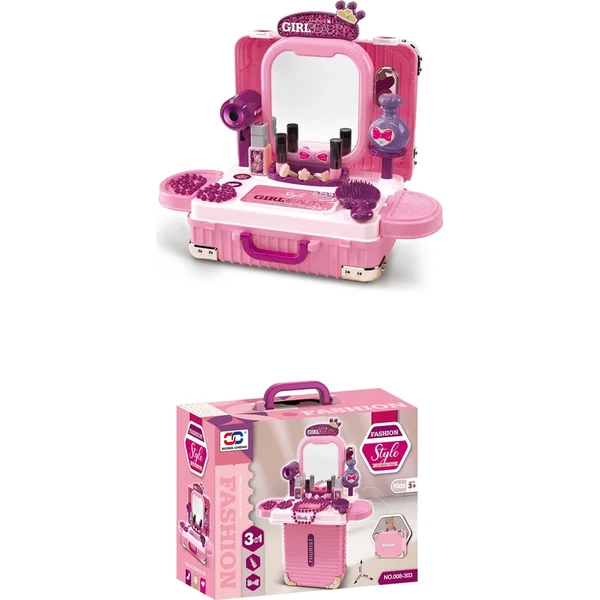Ce magnifique set de cosmétiques 2 en 1 est le rêve de chaque petite coquette ! En un instant, il se transforme en une valise compacte sur roulettes que les enfants peuvent facilement emporter partout avec eux – et une fois déplié, il se transforme en une coiffeuse complète avec miroir et accessoires riches. Idéal pour un jeu créatif, un maquillage imaginatif et des transformations stylées.