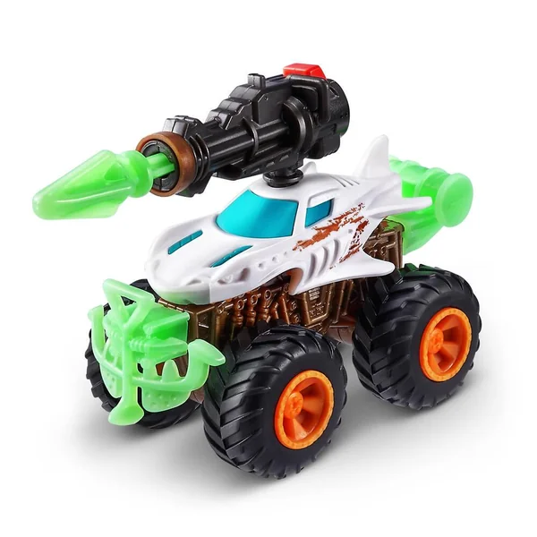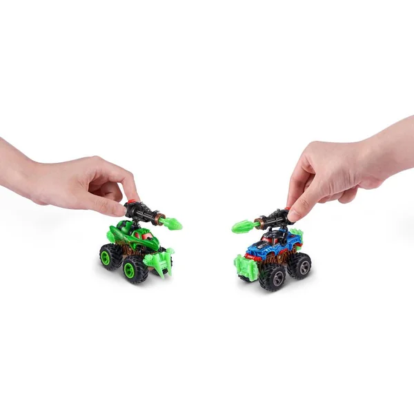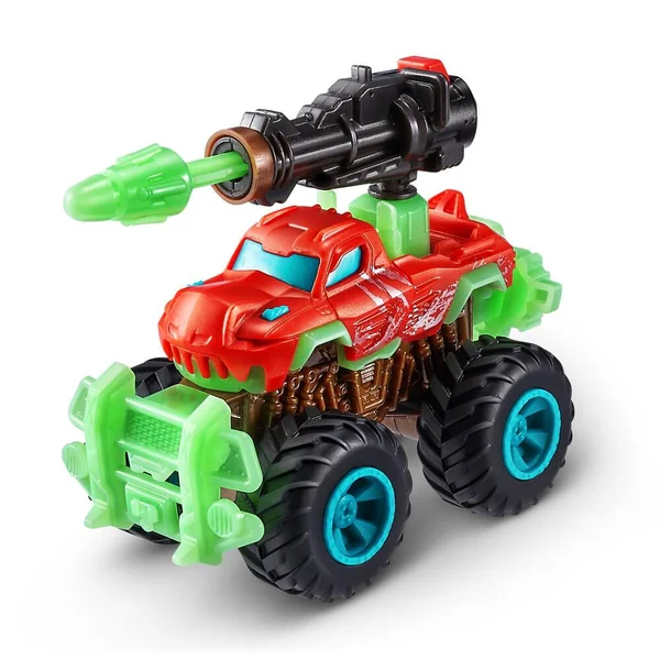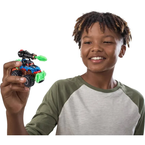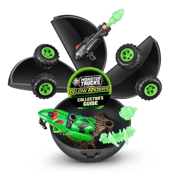 Déballe, construis, combat et fais la course avec les Monster trucks Glow Riders 5 Surprise! Découvre des pare-chocs fluorescents, armes, roues et carrosseries. Collectionne les 7!