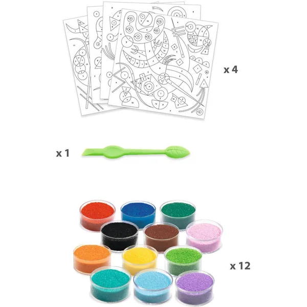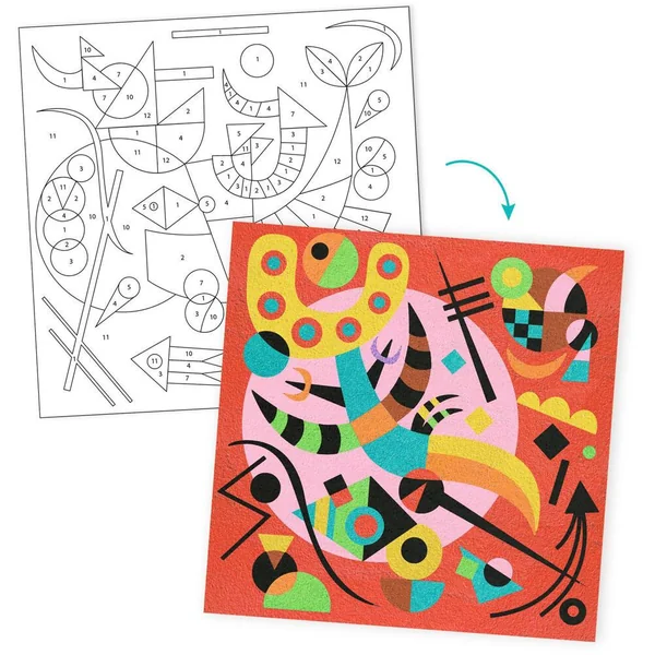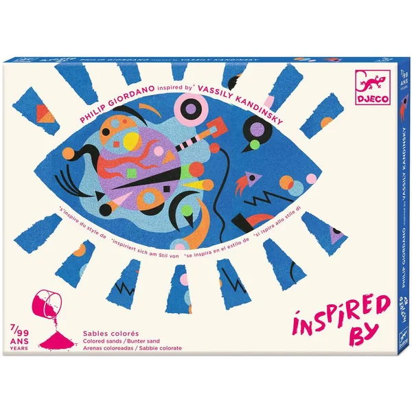 Une activité de sables colorés aux illustrations inspirées du style de Vassily Kandinsky, grand maître de l’Art abstrait. L’enfant place son tableau dans la boîte, il dévoile les zones préencollées grâce à l’outil fourni, puis les saupoudre de sables en suivant le code couleur indiqué dans le livret. Les formes libres semblent alors jouer avec nos émotions.