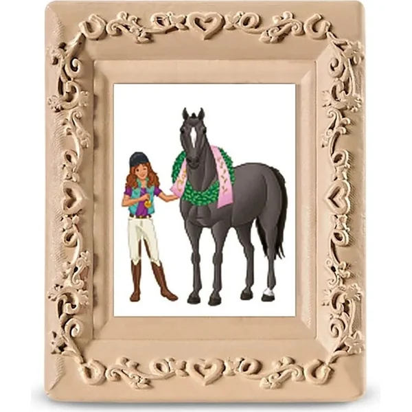 Grâce à l’accessoire de tournoi Schleich® Horse Club, la remise des prix est parfaite. Le cavalier est récompensé pour son excellente compétence équestre par un luxueux drapeau et un précieux trophée pour les chevaux. Le cheval est également récompensé. Pour sa performance impressionnante et sa grande ambition, il reçoit un magnifique ruban de vainqueur. Dans le cadre de l’image se trouve une photo qui préserve à jamais ce moment incroyable.