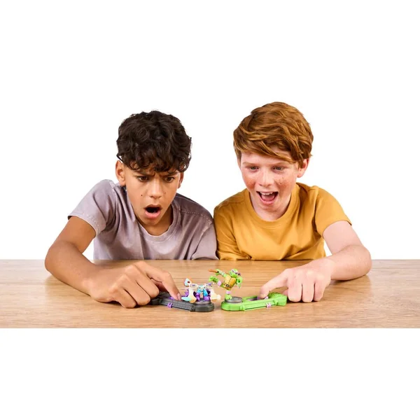 Entre dans l’arène de combat des Tortues Ninja x Akédo! 2 guerriers ultra rares exclusifs ! 35 effets sonores, 4 arrière plans de l’univers Tortues Ninja. Vis l’expérience de combat ULTIME avec le pack duel d’Akedo Tortues Ninja. Découvre Donatello face à Baxter Stockman avec leurs manettes de combat.