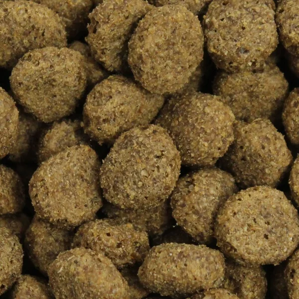 Composition : viande de poulet, amidon de maïs, farine de riz, betterave séchée, gésiers de volaille, viande de poisson, œufs séchés, levures séchées, chlorure de potassium, huile de maïs, DL-méthionine, graines de lin.