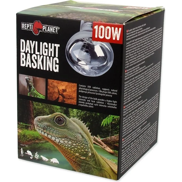 La lampe REPTI PLANET Daylight Basking fournit un rapport optimal de rayonnement ultraviolet UVA, de rayonnement lumineux et de rayonnement infrarouge (thermique) et est idéale en combinaison avec des lampes UVB et des lampes nocturnes (par exemple, Repti Planet Repti UVB, Infrared Heat, Night Heat). Il s’agit d’une ampoule à large spectre qui soutient les processus physiologiques tels que l’activité, l’apport alimentaire et la reproduction. Grâce à une couche réfléchissante spéciale à l’intérieur de l’ampoule, elle offre une intensité plus élevée de rayonnement lumineux et thermique. –crée un point de chaleur local pour les reptiles et les amphibiens –augmente la température intérieure du terrarium –contient un rayonnement UVA, soutient les processus physiologiques naturels –la construction de l’ampoule fournit une intensité plus élevée de rayonnement lumineux et thermique. Spectre : infrarouge (chaleur) UVA Type d’animal de terrarium : Gecko, Tortue terrestre, Agame aquatique, Agame barbu, Serpent, Grenouille, Caméléon, Iguane, Crapaud Puissance (Watt) : 100W