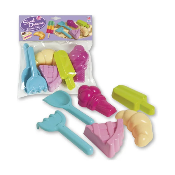 Contient : râteaux, pelle et moules : esquimau, glace, gâteau et croissant.