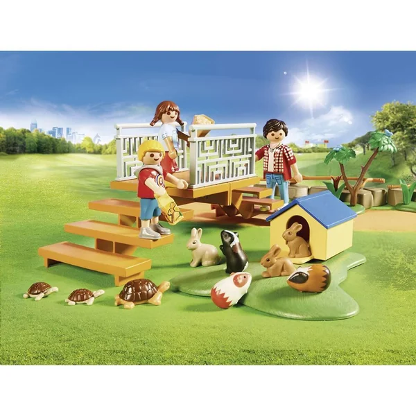 Le parc animalier Playmobil est un lieu que tout le monde adore, les petits comme les grands. On peut y observer une vingtaine d’espèces en semi-liberté, qui mènent chaque jour leur vie de famille avec leurs congénères et les autres espèces avec lesquelles ils cohabitent. Le parc est magnifique et il contribue à la sauvegarde des espèces en garantissant aux animaux un lieu de vie confortable où ils sont nourris, logés et choyés ! Les visiteurs empruntent un chemin bien précis pour visiter le parc afin de ne pas déranger les animaux, mais aussi de rester en sécurité. Ils pourront approcher et caresser les animaux qui n’attendent que ça lors de leur passage au jardin animalier ! Le zoo pour enfants peut être modulé comme désiré avec les différents éléments du set. Contient une plate-forme d’observation et distributeur de nourriture pour animaux. Dimensions : 18×7,5×8,5 cm (LxPxH).