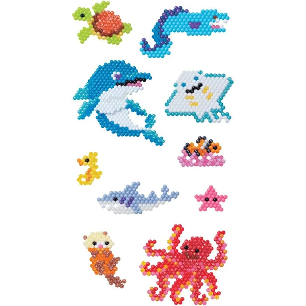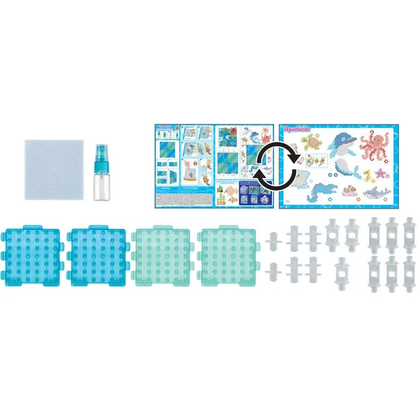 Avec ce coffret, la magie du monde marin va prendre vie ! Ce coffret inclus 4 bases de créations, qui te permettrons d’exposer toutes tes créations une fois terminées. Tu obtiendra alors un joli tableau sous-marin pour décorer ta chambre ! Le principe est simple : assemble les perles, vaporise de l’eau, laisse sécher et c’est prêt ! Il suffit de clipser tes créations sur la base pour la décorer ! Ce coffret contient des perles de différentes formes, la base de création pour exposer tes créations et décorer ta chambre, ainsi que l’essentiel pour des heures de créativité avec Aquabeads !