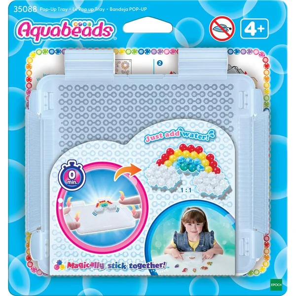 Vous êtes impatients que vos créations Aquabeads sèchent ? Grâce au pop-up tray, vaporisez de l’eau et vous pouvez faire sauter votre création et la retirer immédiatement, sans temps d’attente ! Le principe d’Aquabeads est simple : assemble les perles, vaporise de l’eau, laisse sécher et c’est prêt ! Les perles collent ensemble comme par magie. Une source de chaleur n’est pas nécessaire, ce qui permet aux enfants de jouer en toute sécurité du début à la fin du procédé, et d’en tirer une grande satisfaction. À partir de 4 ans.
