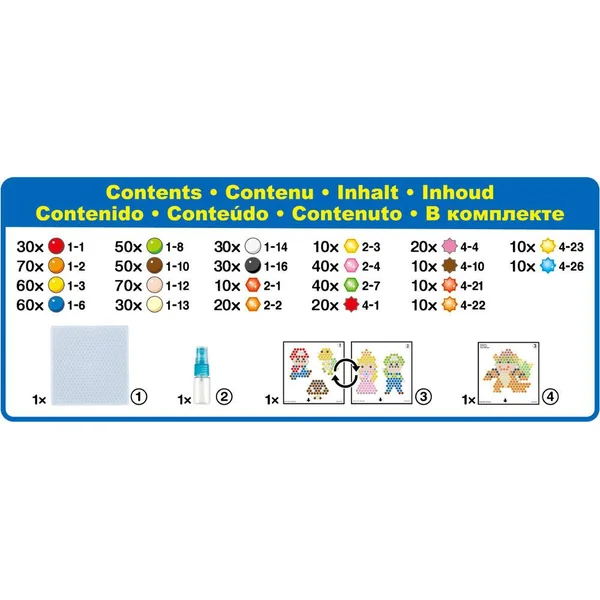 Here We Go ! Revis les aventures de Super Mario et ses amis ! Crée Princess Peach, Bowszer ou encore Luigi et réinvente de nouvelles histoires, ou décore ta chambre avec tes personnages préférés ! Le principe est simple : assemble les perles, vaporise de l’eau, laisse sécher et c’est prêt ! Avec perles de différentes formes (dont les perles étoiles) et couleurs, et l’essentiel pour des heures de créativité avec Aquabeads !