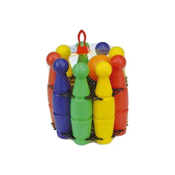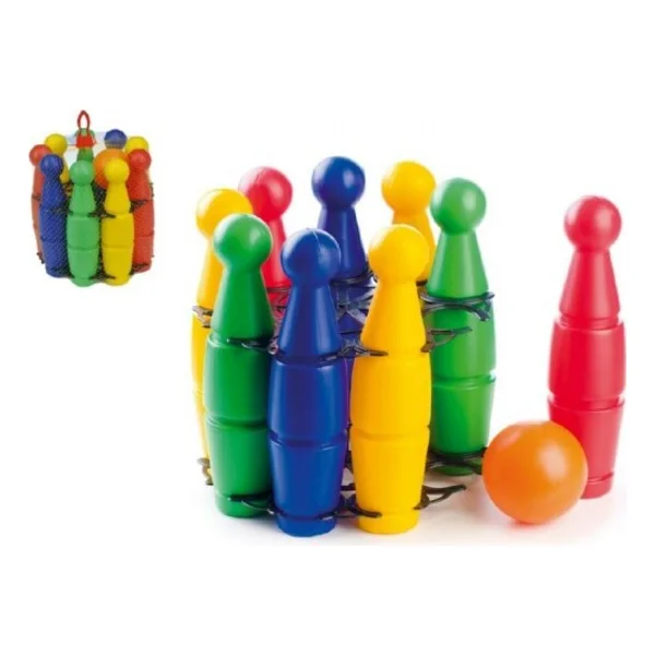 Ensemble de 9 quilles colorées pour enfants. L’ensemble est idéal pour le développement des compétences et de la dextérité.