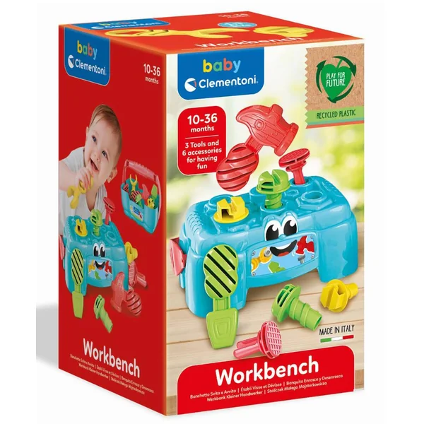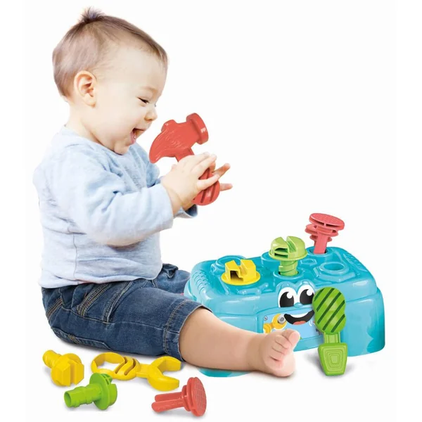 Un atelier de bricolage avec 3 outils (1 marteau, 1 tournevis et 1 pince) et 6 accessoires (clous, boulons et vis) pour s’amuser à bricoler. Il se transforme en caisse à outils que l’enfant peut emporter partout. Il stimule la coordination main-oeil et la motricité fine.