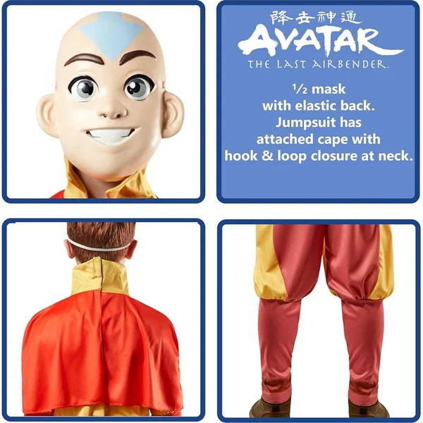 Permettez à votre enfant de devenir le Dernier Maître de l’Air avec ce costume d’Aang, le héros de la série populaire Avatar. C’est le choix idéal pour un carnaval, une fête à thème ou pour s’entraîner à maîtriser les quatre éléments.