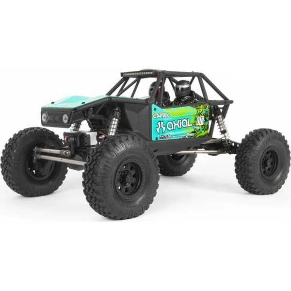 La voiture RC Axial Capra 1.9 est un modèle avec l’apparence d’un grand buggy mais avec des caractéristiques de Crawler, conçu pour les terrains difficiles et l’escalade des rochers. Elle est entièrement assemblée et prête à rouler. Pour contrôler le modèle, un émetteur RC Spektrum STX3 à 3 canaux dans la bande de 2,4 GHz est inclus. Les caractéristiques de base du modèle incluent une grande garde au sol, la possibilité de désactiver la traction de l’essieu arrière, un design réaliste de carrosserie tubulaire, des pignons entièrement métalliques et des roulements à billes, une suspension à 4 points et des essieux portaux. Roues sous licence avec jantes Raceline et pneus Nitto Trail Grappler 1.9.