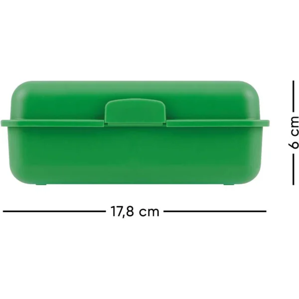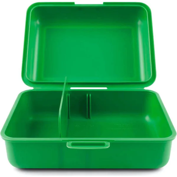 Boîte en plastique pour le déjeuner avec une fermeture à un verrou, contient un compartiment de séparation.