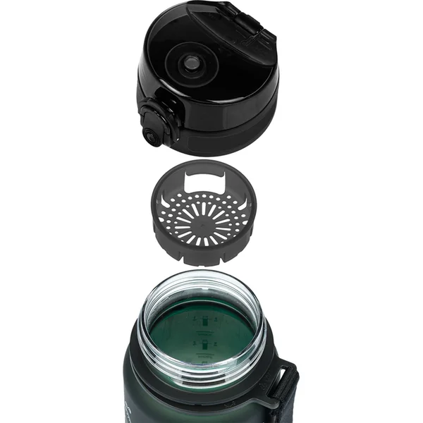 Le bouchon verrouillable ne laisse passer aucune goutte de boisson et assure une manipulation simple et intuitive. La bouteille est équipée d’un filtre, grâce auquel vous pouvez l’utiliser pour des limonades avec des fruits ou du thé (le matériau est également adapté pour les boissons chaudes). Un cordon est attaché à la bouteille, ce qui permet de la porter confortablement à la main.