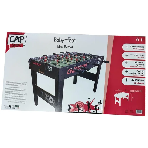 - Poids du baby-foot : 14.5 kg. (Le baby-foot n’est pas pliable.)