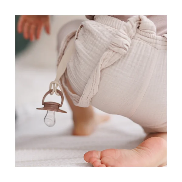 – Possibilité d’attacher une chaîne – une chaîne ou un clip peut être attaché à la poignée de la tétine pour qu’elle soit toujours à portée de main