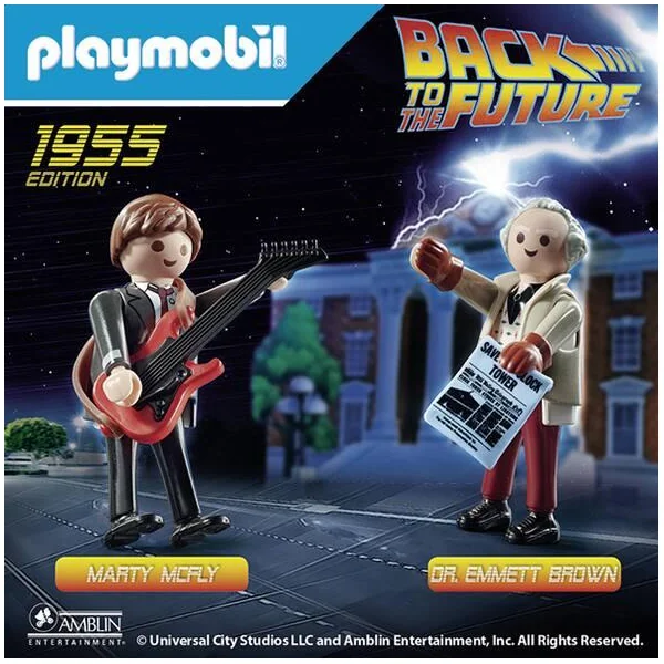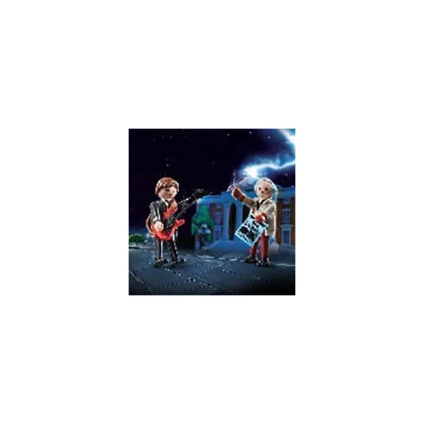 Parti de l’année 1985 et propulsé en 1955, Marty aidé par le docteur Brown doit résoudre les paradoxes temporels provoqués par lui dans le passé et réparer la machine à remonter le temps pour retourner dans son époque. Marty McFly et Dr Brown avec des tenues de 1955. Comprend les deux héros de Retour vers le futur, avec des tenues de 1955.