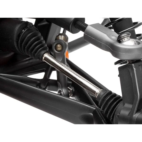Le résonateur optionnel (870086690) améliore encore les perfs du moteur, les masselottes d’embrayage spécialement conçues pour le 26cc procurent un couple époustouflant en sortie de virage, le boitier de différentiel en aluminium protège au mieux le moteur et les cardans ont été renforcé pour restituer au train arrière le meilleur des perfs du moteur.
