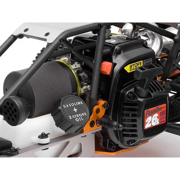 Le coeur du nouveau BAJA 5B SS (kit à construire) réside dans son nouveau moteur 26S de 26cc. Il a été fiabilisé et délivrent des performances bien supérieures à celles de son prédécesseur. Plus de couple en bas et des perfs ahurrissantes en bout de ligne droite. Il s’agit d’un moteur 2 temps consommant un mélange essence classique avec huile 2 temps. Le coup d’utilisation est donc bien inférieur à un moteur type nitrométhane.