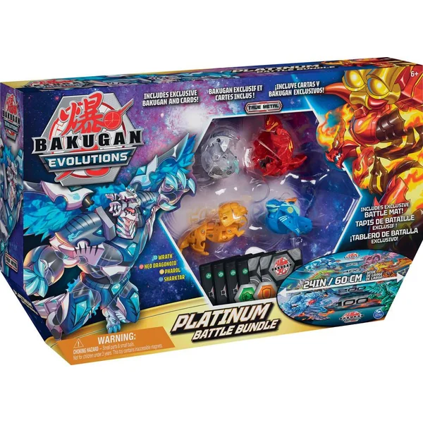 Un coffret prêt-à-jouer et transportable pour découvrir la multitude des pouvoirs Bakugan et s’affronter partout. L’arène de combat officielle facilite le déroulé des parties et permet de s’immerger encore plus dans l’ambiance du dessin animé. Arène pliable en tissu d’environ 60 cm de large. Contenu : 2 Bakugan True Metal et 2 Bakuan Saison 4 exclusifs inclus pour des combats épiques, 2 tuiles hexagonales BakuCore, 6 cartes fournies dont 2 cartes Portail aimantées pour lancer et déployer ses Bakugan et une règle de combat. Un concept unique : à la fois figurine d’action, jeu d’adresse, casse-tête et collectionnable ! Un mécanisme de transformation magique pour les enfants. Les billes Bakugan se déploient et se transforment en créatures fabuleuses lorsqu’elles sont envoyées correctement sur les cartes hexagonales aimantées. Des combats épiques pour les enfants ! Chaque Bakugan est aussi un casse-tête miniature : il faut apprendre à maîtriser son mécanisme de fermeture unique.
