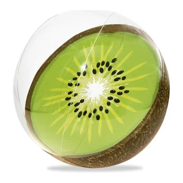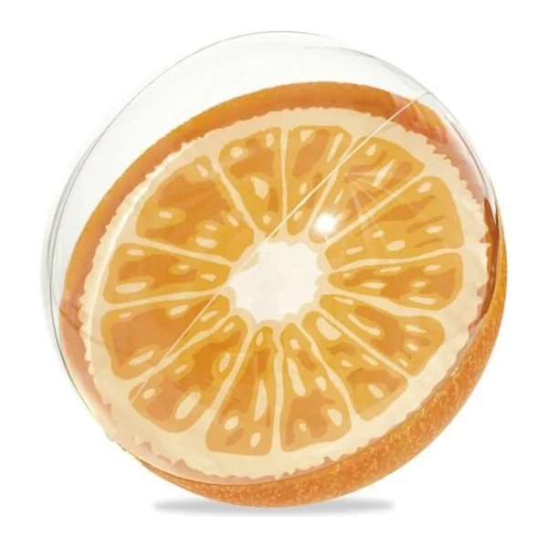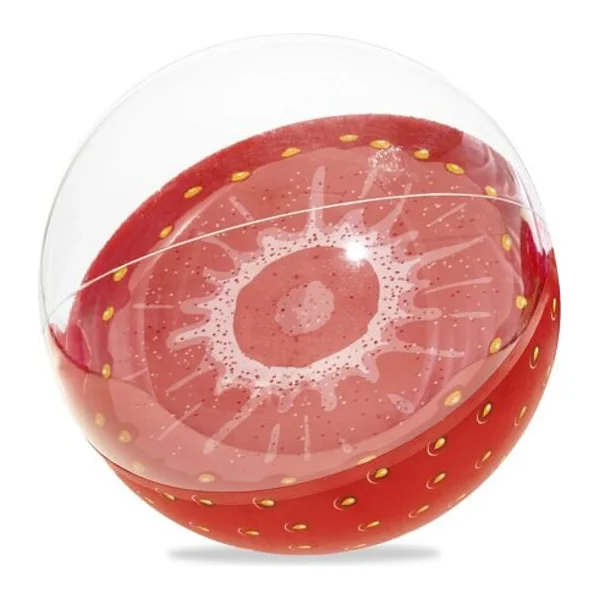 Ballon gonflable transparent Bestway pour l’eau, imitant un fruit coupé en trois variantes – fraise, kiwi et orange (la deuxième moitié du ballon est transparente).
