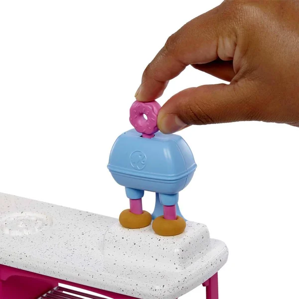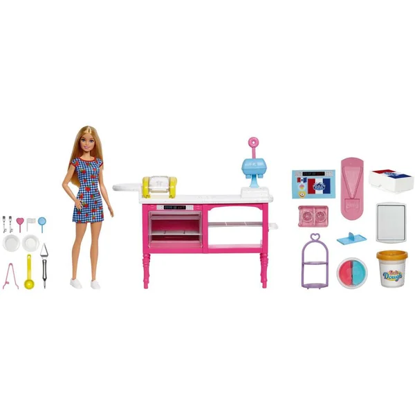 Les enfants vont adorer préparer des gâteaux avec Barbie « Malibu » Roberts et le coffret inspiré du café It Takes Two. Avec trois couleurs de pâte différentes, des moules et du matériel de cuisine, rien de plus simple que de préparer et de servir de délicieuses pâtisseries comme des croissants, des cupcakes et des donuts. Les boulangers en herbe peuvent décorer et présenter leurs gourmandises, puis les emballer pour recréer des scènes ou imaginer de nouvelles aventures. Pâte non comestible. La poupée ne tient pas debout toute seule. Les couleurs et les décorations peuvent varier.