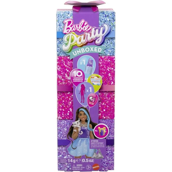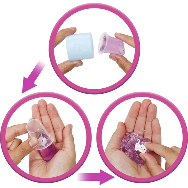 Elle comprend une poupée Barbie avec deux transformations colorées, des vêtements et des accessoires, de la pâte gélatineuse, une palette de maquillage et un tube de gloss à lèvres avec des surprises cachées, un adorable animal de compagnie et bien plus encore.