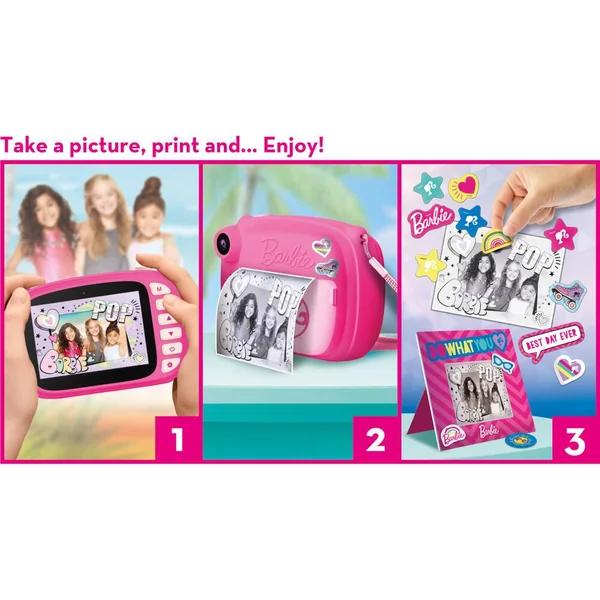 Cam Hi-Tech Appareil Photo Instantané Vidéo et Fonction Selfie Lisciani Barbie Print Cam Hi-Tech –