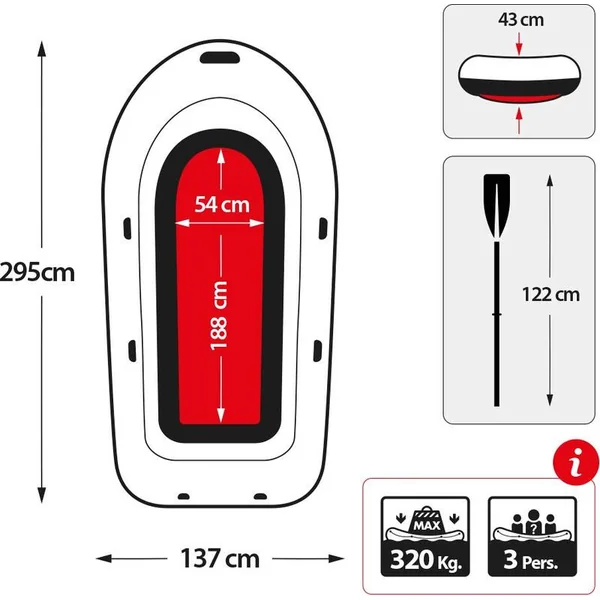 - capacité du bateau gonflable : 3 x personnes/max. 320 kg