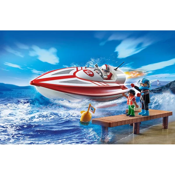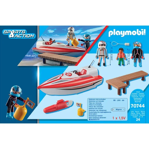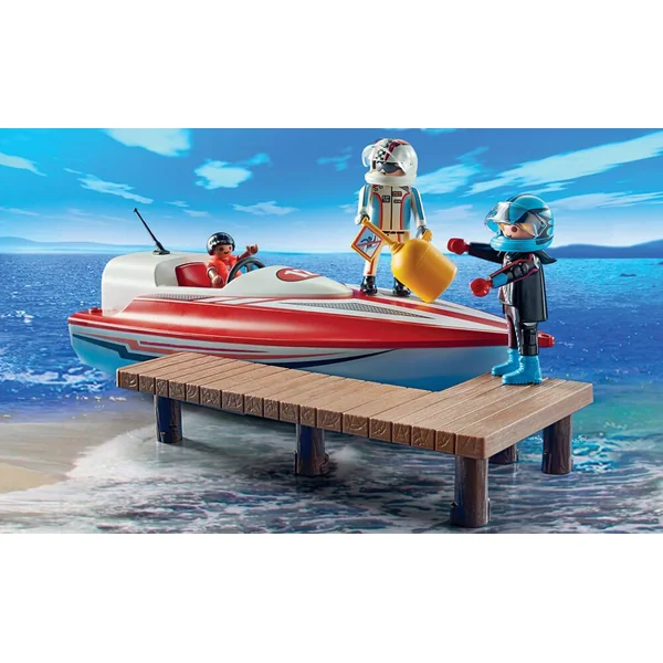 Contient 3 figurines, 1 bateau avec moteur submersible et de nombreux accessoires.