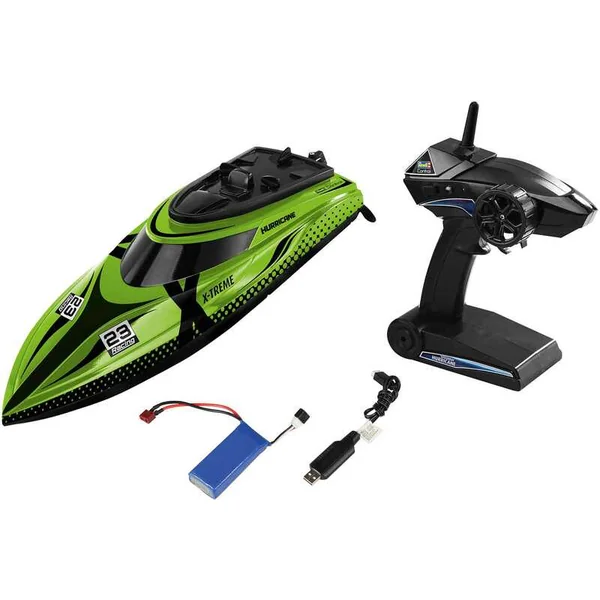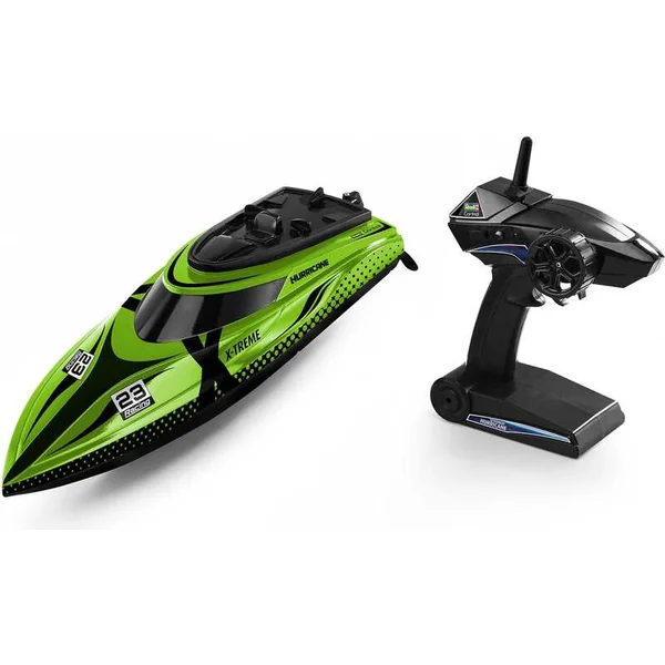 La série X-TREME de Revell Control offre une expérience de conduite parfaite pour les modèles RC. Le modèle X-TREME Boat Hurricane offre la puissance que vous souhaitez. Grâce à sa coque robuste, à sa batterie LiPo 7,4 V puissante et à sa télécommande 2,4 GHz, vous propulserez le moteur refroidi par eau à des performances maximales. Avec une vitesse allant jusqu’à 45 km/h, le X-TREME Boat Hurricane file sur l’eau. Le système d’avertissement de batterie faible vous informe lorsque la batterie est presque déchargée, vous permettant ainsi d’avoir toujours suffisamment d’énergie pour revenir au port. De plus, grâce à sa conception, le Boat Hurricane peut toujours revenir à sa position flottante normale en appuyant sur un bouton, même après un retournement. Le circuit de protection inclus empêche le démarrage des hélices lorsque le bateau est sur la terre. Cela élimine le risque de blessure.