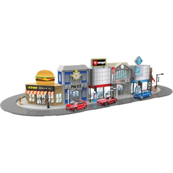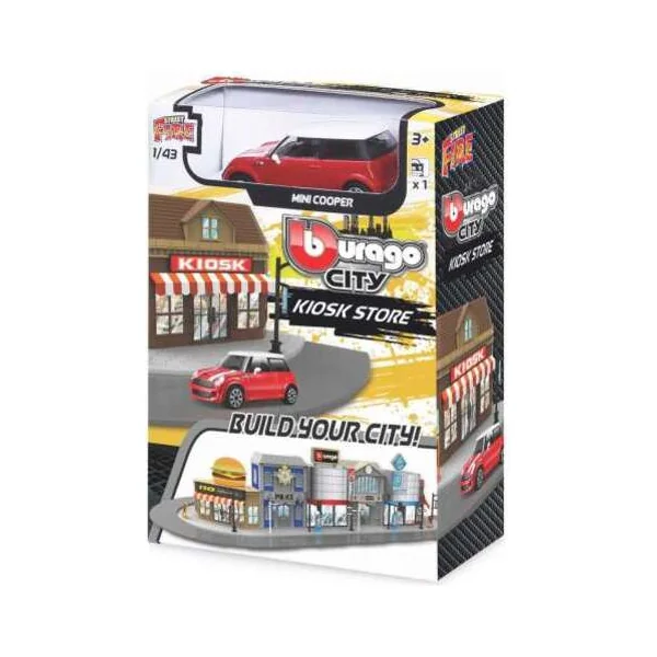 Le set permettra aux petits conducteurs d’ajouter ou de créer leur propre petite ville. L’emballage contient une maquette en plastique d’un kiosque, une voiture.