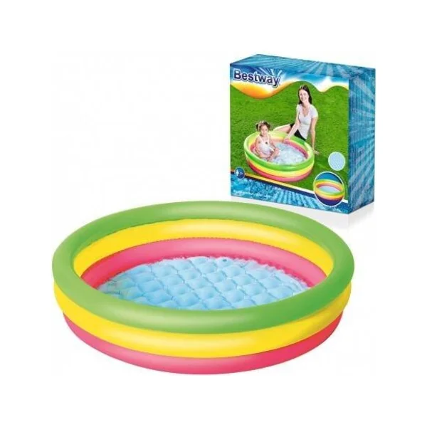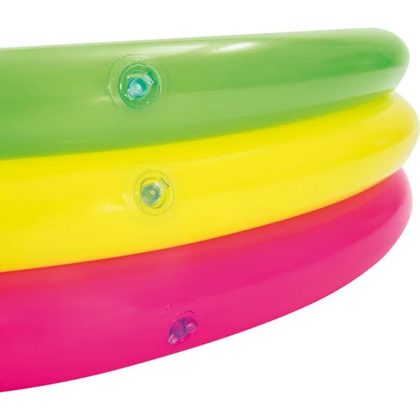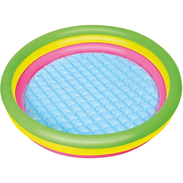 La piscine gonflable pour enfants Arc-en-ciel avec un fond doux est destinée aux plus petits. Grâce au tapis doux dans la piscine, votre enfant peut jouer confortablement dans l’eau. La piscine se compose de trois anneaux gonflables colorés. Elle est fabriquée en vinyle résistant d’une épaisseur de 0,19 mm.