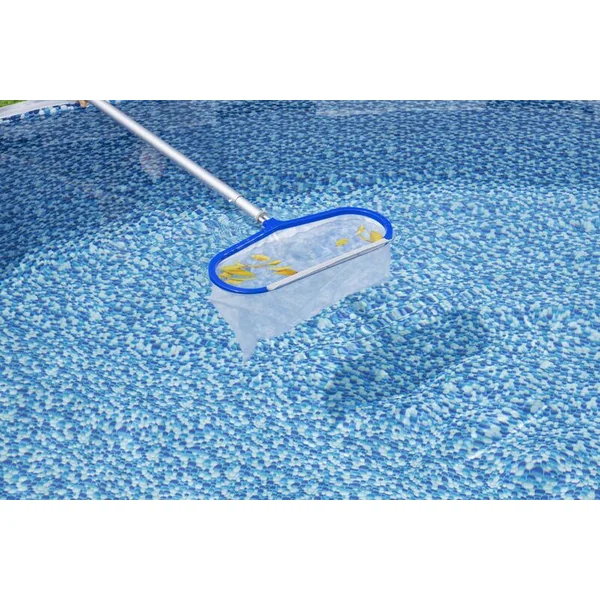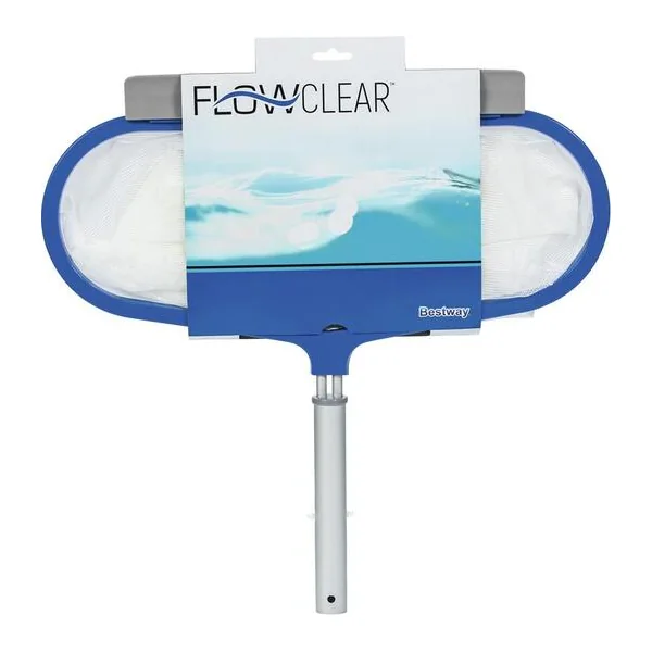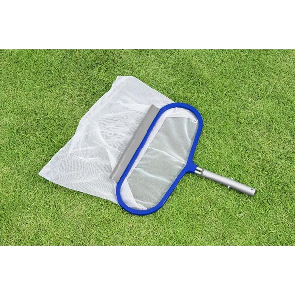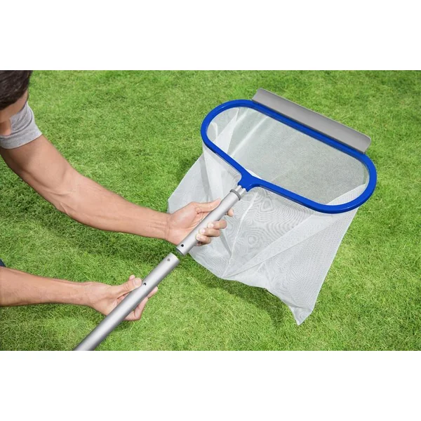 Le accessoire pour épuisette Bestway® AquaRake™ Deluxe Flowclear™ est conçu pour garder les piscines propres sans problème. La taille du filet stable est idéale pour aspirer les grosses salissures. À l’avant du filet se trouve un petit dispositif semblable à une pelle. Cela vous aidera à ramasser efficacement les salissures. À cet effet, connectez l’accessoire à n’importe quel manche (non inclus) avec un diamètre intérieur de 30 mm, afin de pouvoir utiliser l’accessoire avec n’importe quelle taille de piscine. Le cadre et la poignée AquaRake™ Deluxe sont fabriqués en aluminium de haute résistance, qui est associé à un filet durable. Rien ne s’oppose à un vol avec de l’eau cristalline dans la piscine.