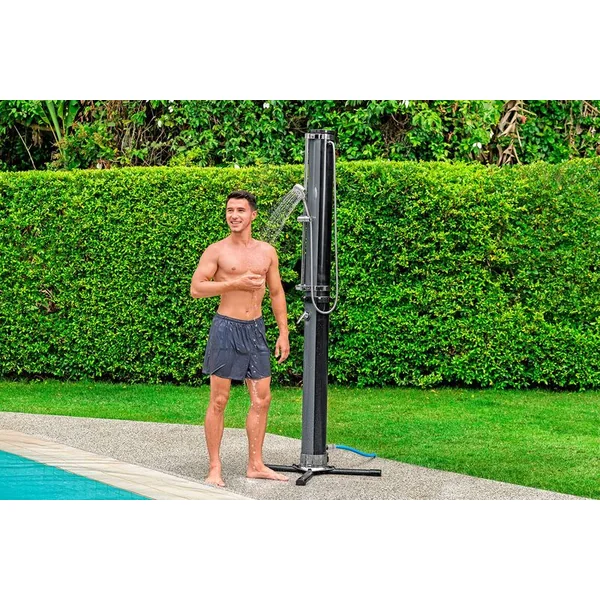 Douche de jardin Bestway® Solarflow™ avec une généreuse capacité de 35 litres représente une oasis rafraîchissante idéale pour votre espace extérieur. Cette douche solaire fonctionne sans aucune consommation d’énergie supplémentaire, car elle utilise exclusivement l’énergie solaire pour chauffer l’eau dans le réservoir. Avec une hauteur impressionnante de 218 cm et une construction robuste qui résiste à toutes les intempéries, elle est un accessoire à la fois stylé et fonctionnel pour la piscine, la terrasse ou le balcon.