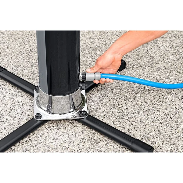 L’installation du produit est extrêmement simple. La douche se fixe directement au sol à l’aide de la base fournie et des vis incluses. L’alimentation en eau est assurée par un raccord rapide à un tuyau de jardin via le raccord intégré. La qualité de fabrication garantit une longue durée de vie et une disponibilité constante tout au long de l’été.