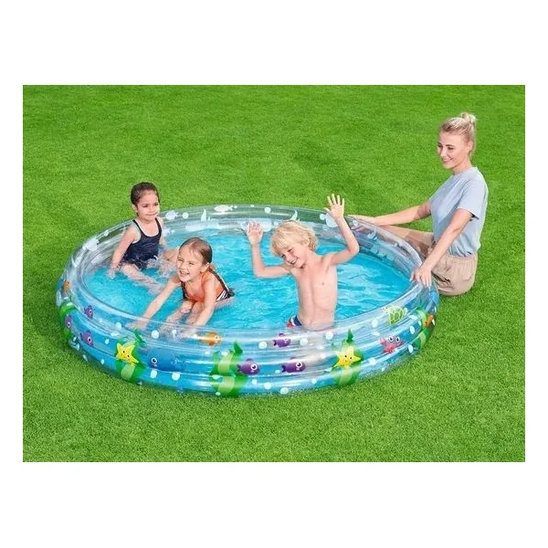 - La piscine a 3 anneaux ronds transparents avec une impression du monde sous-marin.