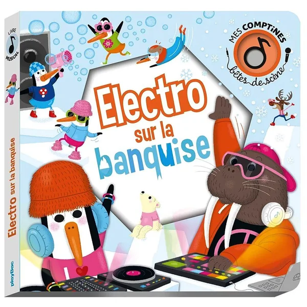 Mes premières comptines revisitées en musique électro ? C’est le parti-pris drôle et électrisant de ce titre qui nous emmène au coeur de la banquise ! 5 comptines traditionnelles connues, entièrement ré-enregistrées et ré-interprétées dans un style electro : Am stram gram ; Vent frais, vent du matin ; Brille, brille, petite étoile ; Vive le vent ; Neige, neige blanche. Un livre sonore idéal pour faire découvrir la musique électronique aux tout-petits, dans un univers drôle et joyeux peuplé d’animaux.