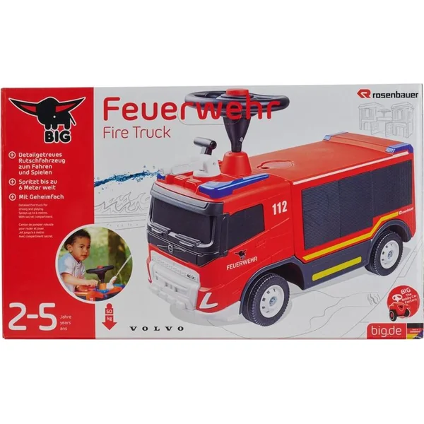 Le porteur – camion de pompier VOLVO de la société BIG est un véhicule pour les petits fans d’action, qui imite un véritable camion de pompier projetant de l’eau pour éteindre les incendies ! L’enfant peut conduire le véhicule à l’aide du volant avec klaxon, ce qui lui apprend également la coordination motrice et les compétences motrices. La voiture a de nombreux détails colorés, comme des lumières bleues et une inscription sur le côté, qui peut être modifiée grâce à 10 autocollants au choix. Cela développe l’imagination de l’enfant.
